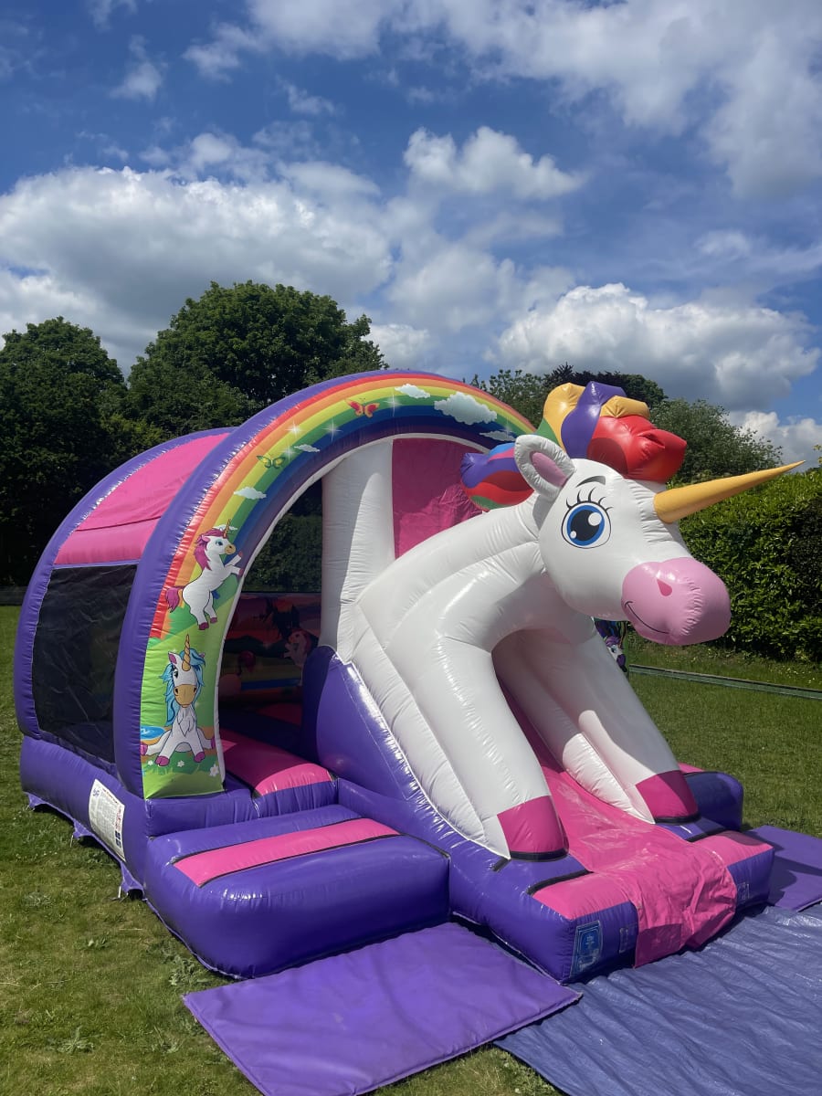 Unicorn Themed Combi Slide Bouncy Castle: The Perfect Party Attraction! 🎉