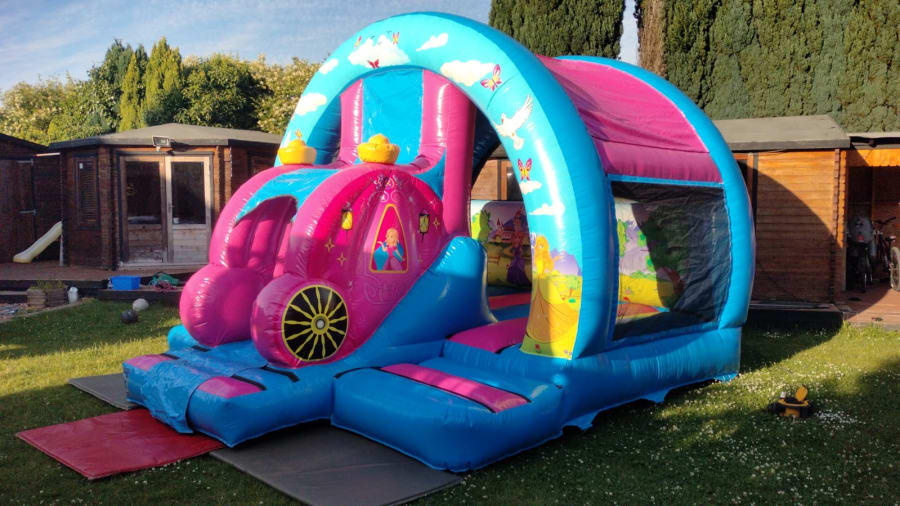 Transform your child's party into a fairy tale wonderland with our Princess Carriage Combi Slide Bouncy Castle. This enchanting bouncy castle brings a wow factor with its stunning 3D effect that is sure to captivate your little princess and her royal guests. With a spacious design, it promises countless hours of fun and excitement. 🎉 Endless Fun with a Magical Twist. The Princess Carriage Combi Slide Bouncy Castle is not just about bouncing around; it's a magical playland complete with a slide, offering children the ultimate combo of bouncing and sliding fun.